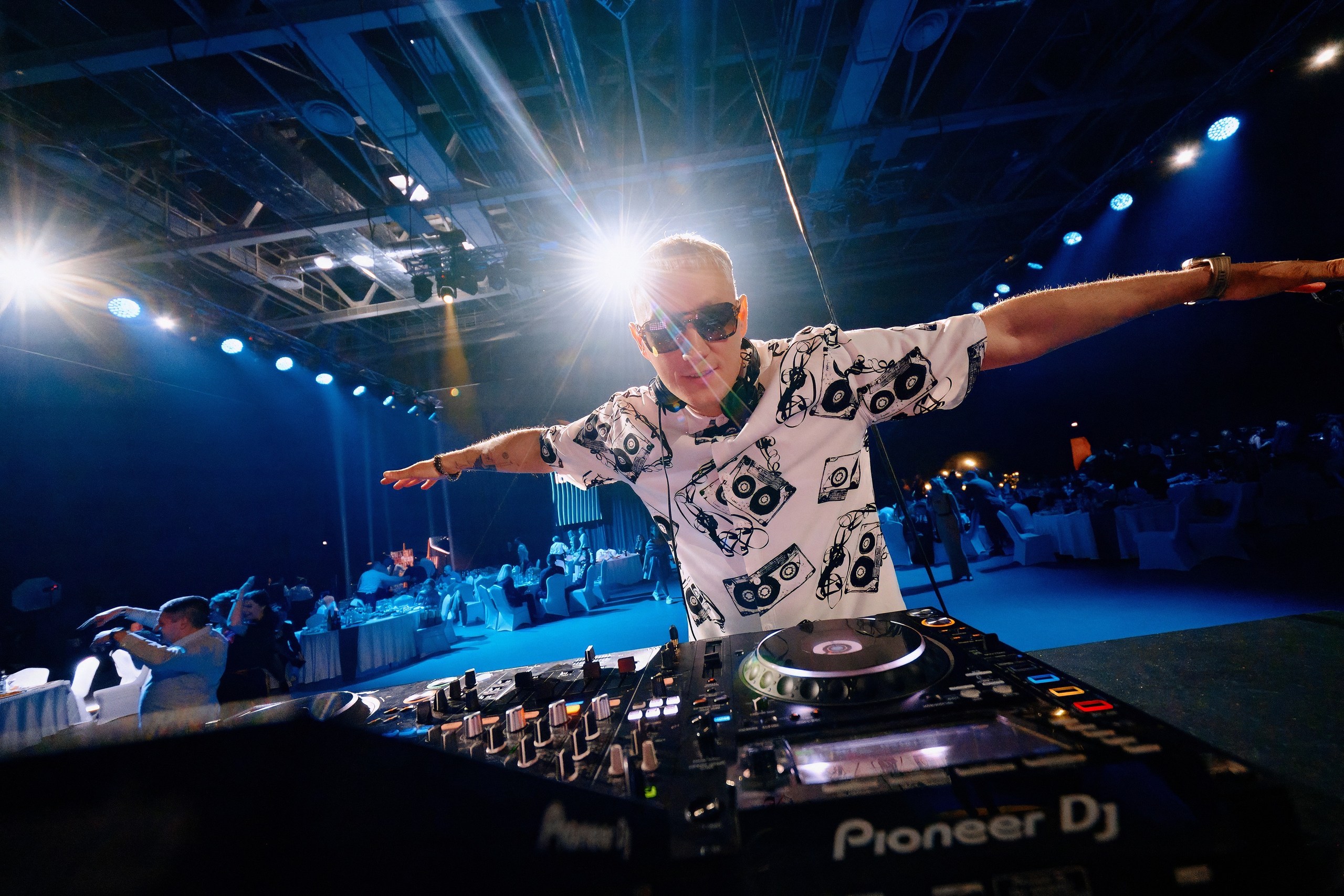 • Многоформатная музыкальная программа: поэтапное изменение атмосферы через выступления разных артистов: живая импровизация диджея и арфистки, выступление джаз-трио, два энергетичных сета De Kuba и финальный танцевальный сет от DJ LEO.