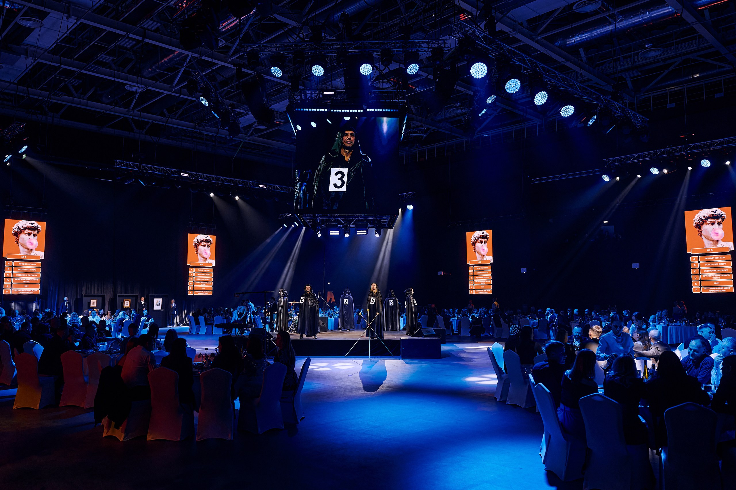 • Масштабное интерактивное шоу «Интуиция»: организация специально разработанного для мероприятия перформанса, где гости угадывали профессии шести артистов (от оперного певца до исполнителя экстремального самурай-шоу), что создало общий азарт и вовлеченность. Каждый номер был подготовлен под тематику ивента, разработана механика подсчета баллов для участия 35 команд.